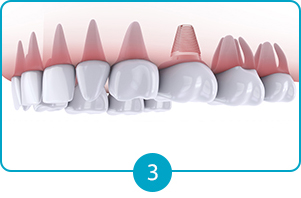 인공치근을 식립하고 해당 부위에 인공치아를 결합하여 치아 기능을 대체하는 치료입니다