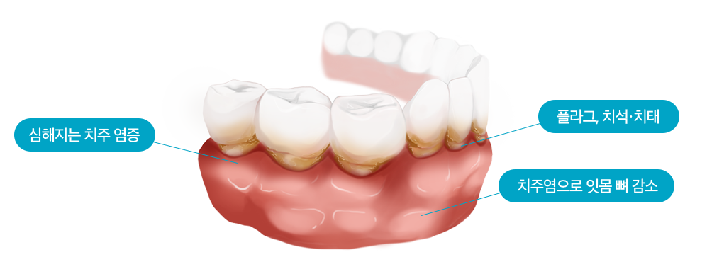 심한 경우 치아를 지지하는 잇몸 뼈가 녹아